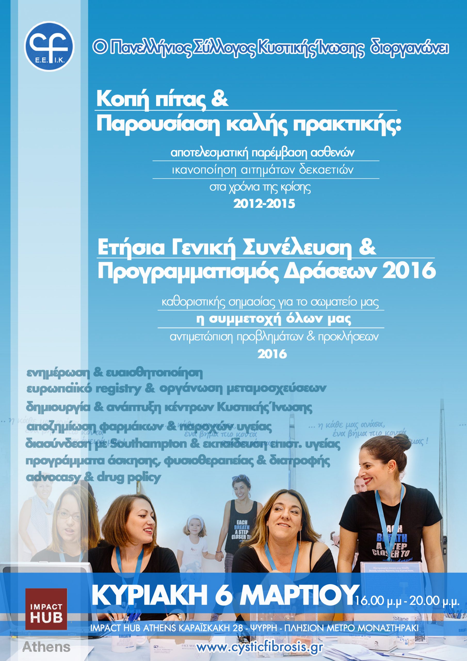 Σας προσκαλούμε λοιπόν και φέτος να παρευρεθείτε στην καθιερωμένη ετήσια Γενική Συνέλευση με κοπή της Πρωτοχρονιάτικης πίτας, που θα πραγματοποιηθεί την Κυριακή 6 Μαρτίου 2016, στις 16.00μμ, στοImpact Hub Athens (Καραϊσκάκη 28, Ψυρρή, πλησίον μετρό Μοναστηράκι).