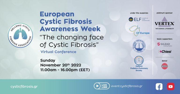 November 25, 2022 European CF Awareness Week- Webinar “The changing face of Cystic Fibrosis”25/11/2022 “The changing face of Cystic Fibrosis” Webinar of Hellenic Cystic Fibrosis Association European CF Awareness Week (21-27th...