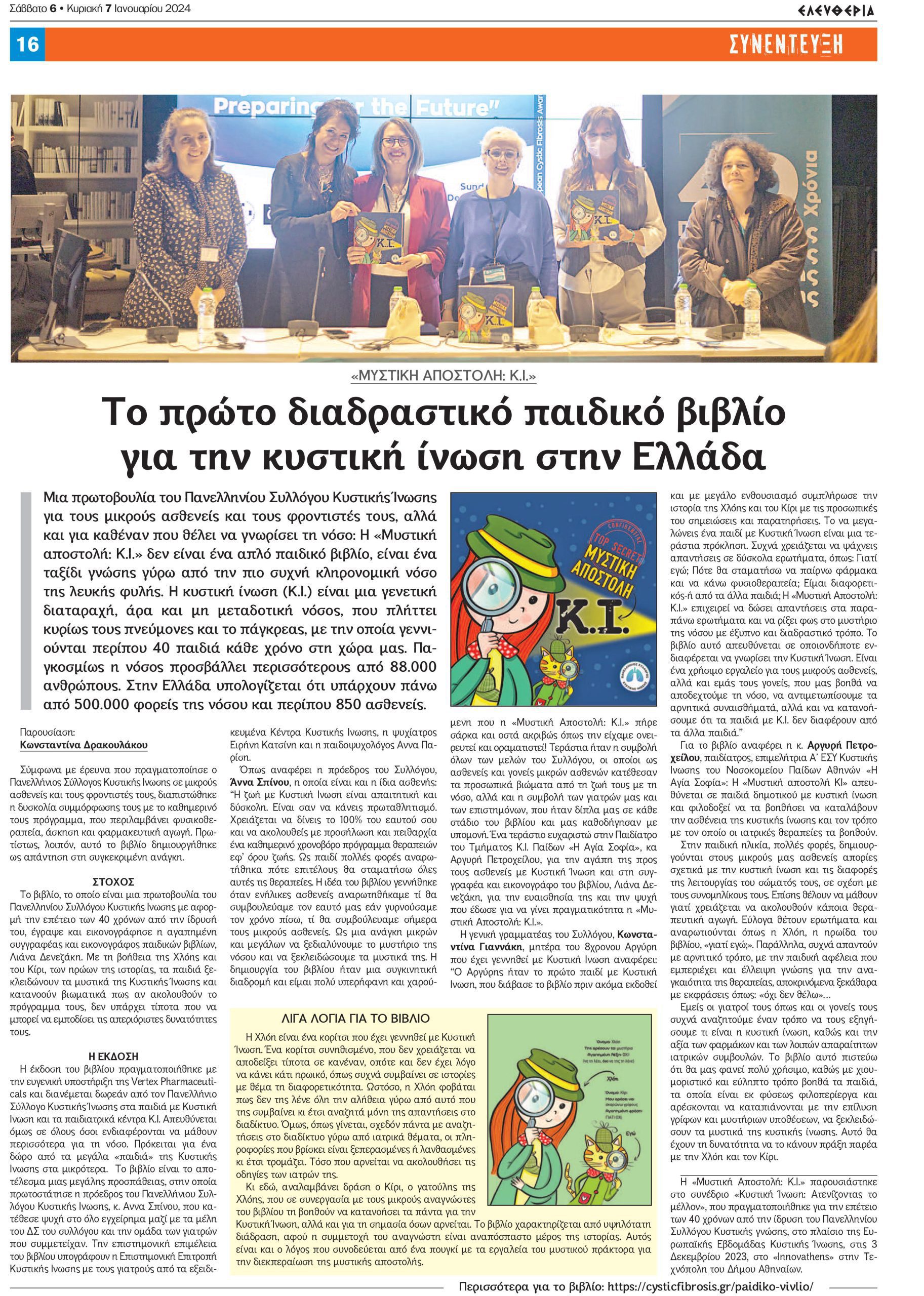 January 11, 2024 Newspaper article for “Secret Mission: CF”"Secret Mission: CF", the first interactive children's book for Cystic Fibrosis in the newspaper"ELEFTHERIA".The article at the following...