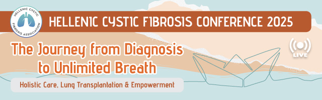 We invite you to the Panhellenic Congress of Cystic Fibrosis 2025, entitled “The Journey from Diagnosis to Unlimited Breath – Holistic Care, Lung Transplantation & Empowerment”. A single day-long meeting of scientists, health professionals, institutions, organisations, patients and caregivers, in a common space for dialogue and collaboration.